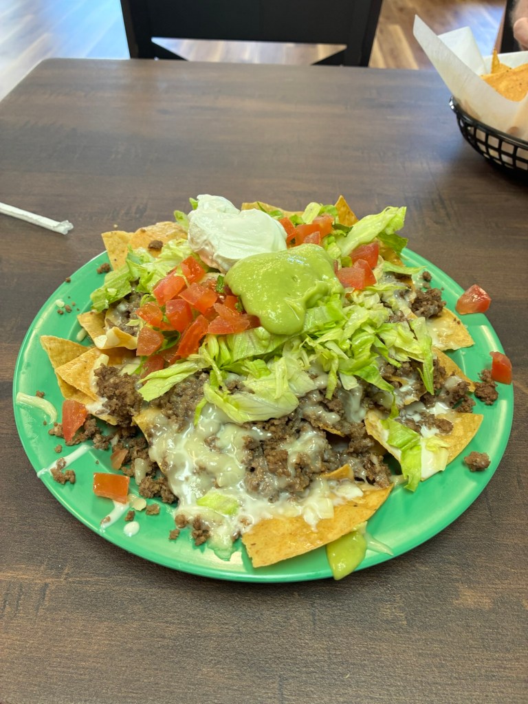 The place was very empty but I think that was mainly because I went on thanksgiving. It was a little run down but it had a market in side. Even though it was run down the bathroom was fabulous. The place hade Fanta which brought up my opinion on this place. The food was superb, the chips were house made and they were so oily I had to wash my hands before writing this blog. The cheese was too good to be true. Their birria was super good. They have a selection of different meals. I got the Nacho supreme. The Nacho supreme had the home made chips on the bottom beef in the middle and lettuce and tomatoes on the top. It was so much to eat so I shared it with my parents. Over all a 9.9/10.